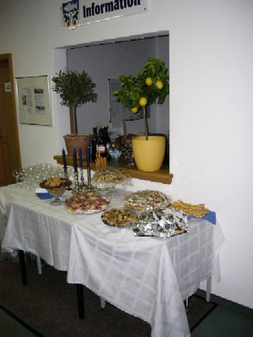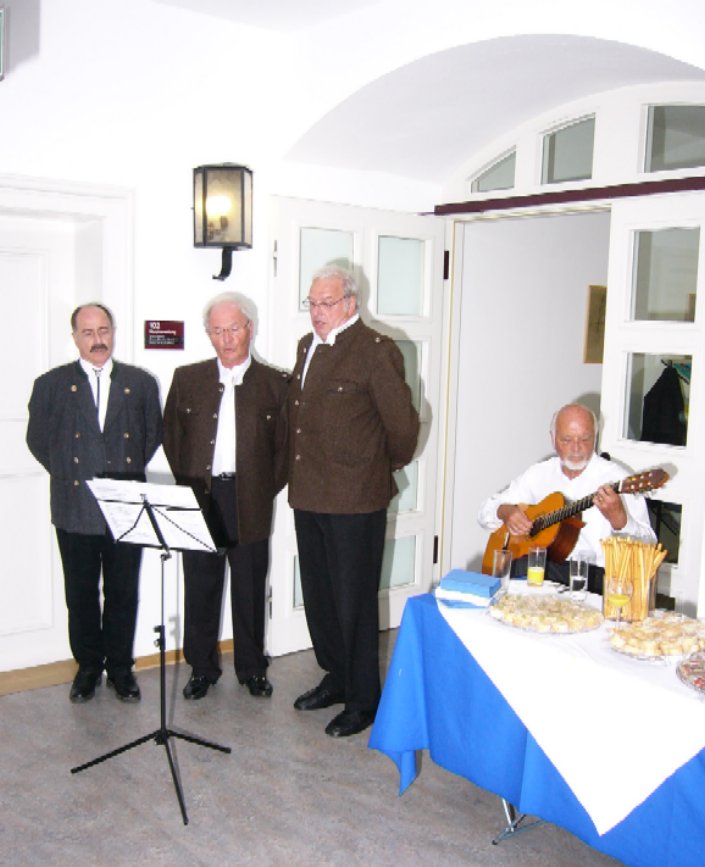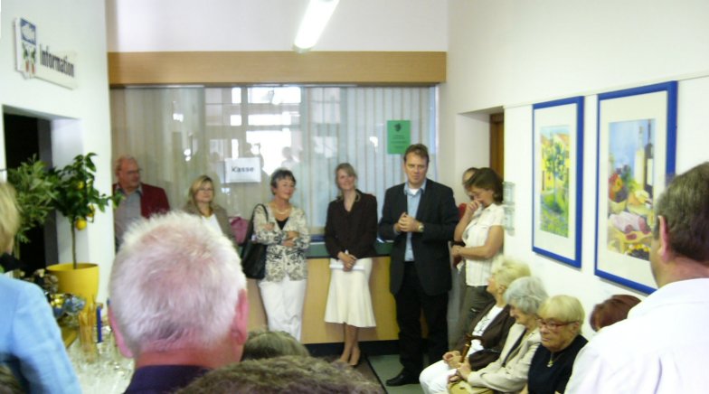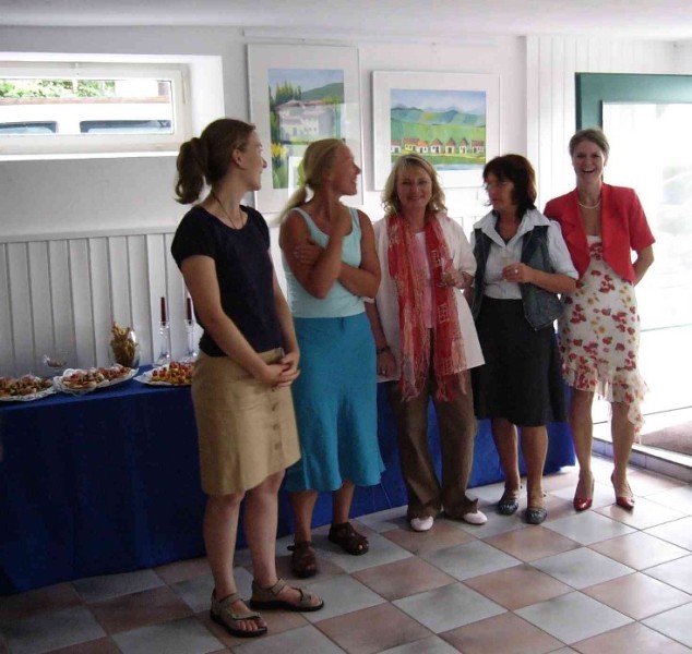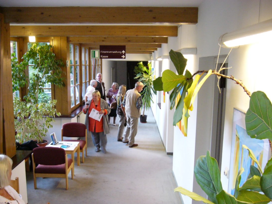Zur Vernissage am 24.09.2009 im Rathaus Weilheim Die Vernissage wurde unter Teilnahme zahlreicher kunstinteressierter von der Kulturreferentin der Stadt Weilheim Frau Ragnhild Thieler und der Künstlerin eröffnet. Von den vielfältigen Stilrichtungen wie Stilleben, mediterranen Landschaften und modernen Kunstwerken und vor allem auch den farbenfrohen Blumenbildern waren nicht nur die Gäste, sondern auch Frau Ragnhild Thieler beeindruckt. In Ihrem Grußwort fand sie begeisterte Wort für die Künstlerin. Ihre Bilder laden zum Verweilen ein und verbreiten eine heitere, fröhliche Atmosphäre im Rathaus. Der Abend wurde untermalt mit dem Dreigesang des Tutzinger Liederkranzes und der Gitarrenbegleitung von Herrn Leipelt. Unter großem Beifall wurden bayrische Lieder vorgetragen. Frau Schrott begrüßte die begeisterten Gäste und eröffnete das reichhaltige Buffet. Für die organisatorische Unterstützung möchte ich mich bedanken bei: |